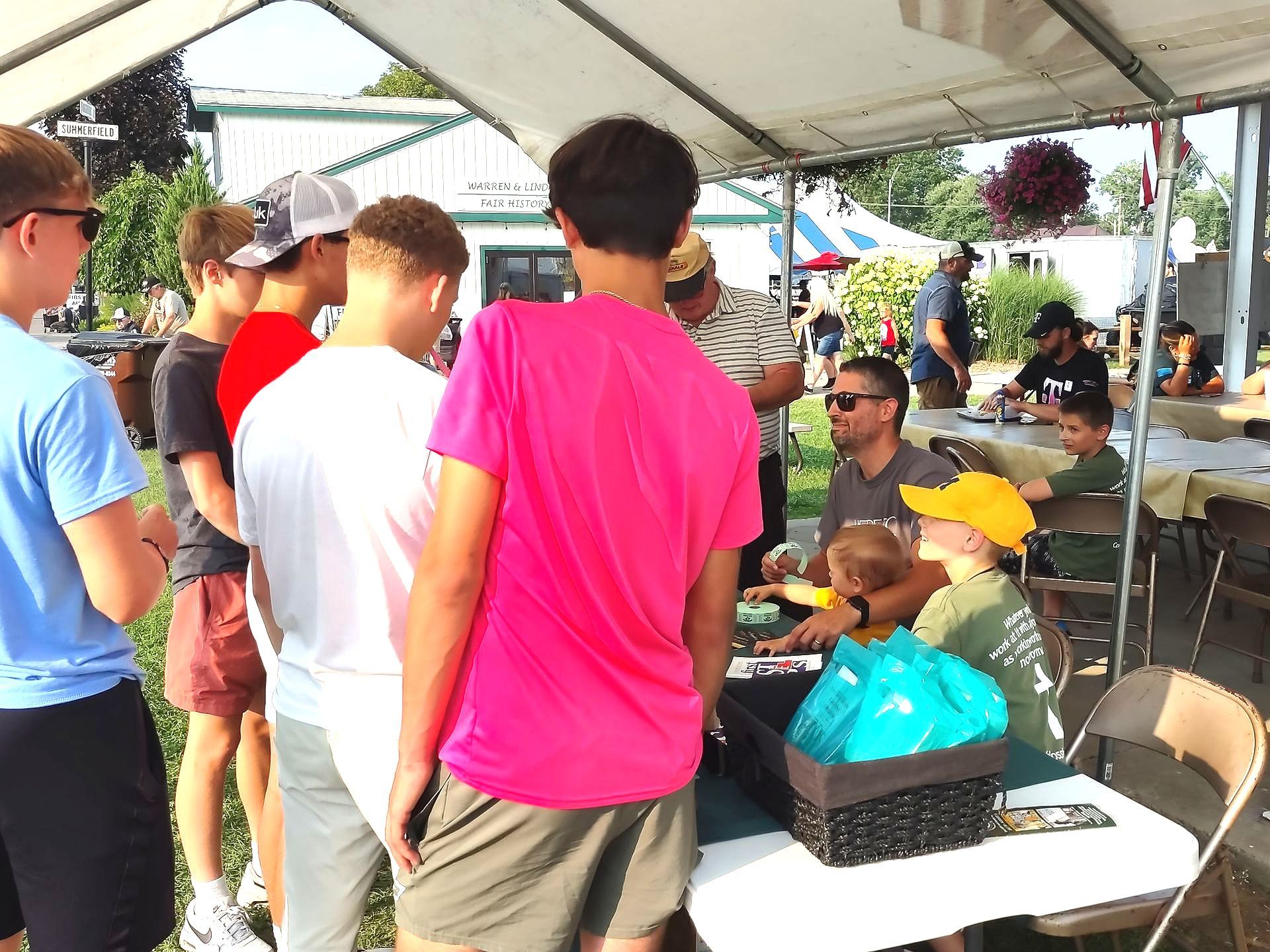 Our church also owns a food booth at the Monroe County Fair. Our mission at the fair is to raise money to give to a person, family or organization in need in our community. None of our profit goes into the church. We are there soley to bless people. We also have a table out front of our booth where we interact with people and teach Bible verses. We absolutely love to see how many come to memorize the verses and hear the Gospel, some for the first time.